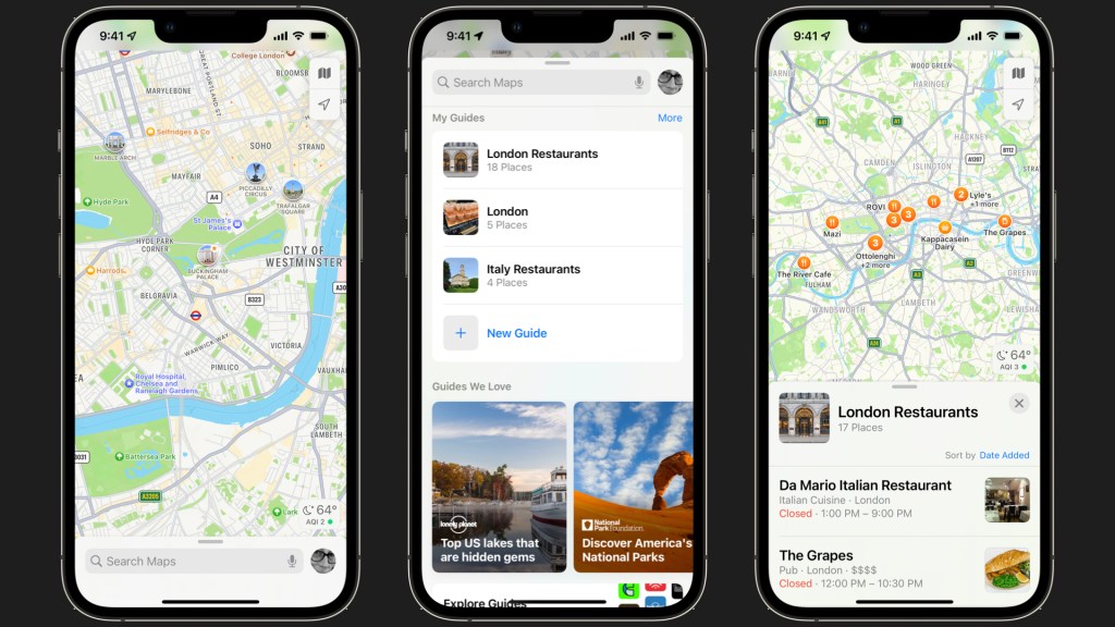 Google has remained steadfast in their process to crowdsource data, particularly for information about places. Apple, on the other hand, has tended to take a much more curated approach, as is their tradition. This difference is best illustrated by the now extensive set of guides from well known publishers that are built right into Apple Maps.